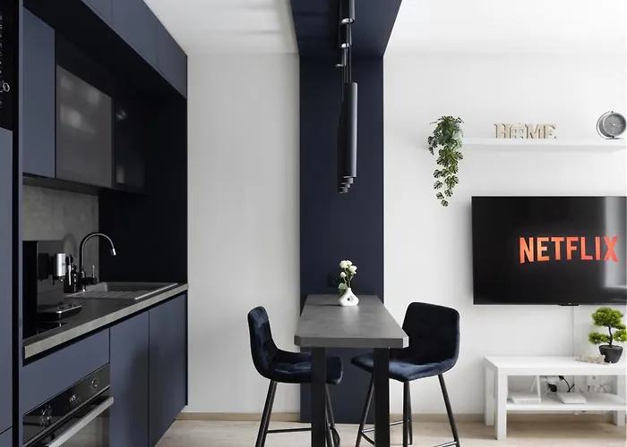 A 27 m²-es Smarty Choice Living With Netflix - Kubanske Namesti apartman Prága régi részén, a Strašnická metróállomástól szomszédságában található. A Žižkov-torony hozzávetőlegesen 25 perc sétára helyezkedik el. A Szent Ludmilla-templom továbbá 3 km-re található.
